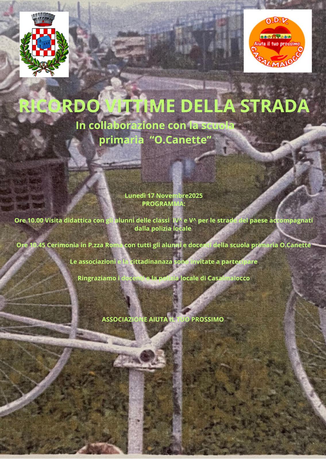 In occasione della Giornata Mondiale a Ricordo delle Vittime della Strada il Comune partecipa alla seguente iniziativa: